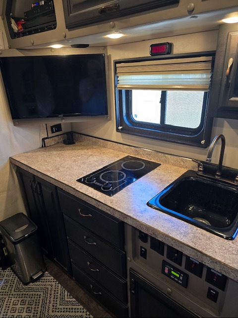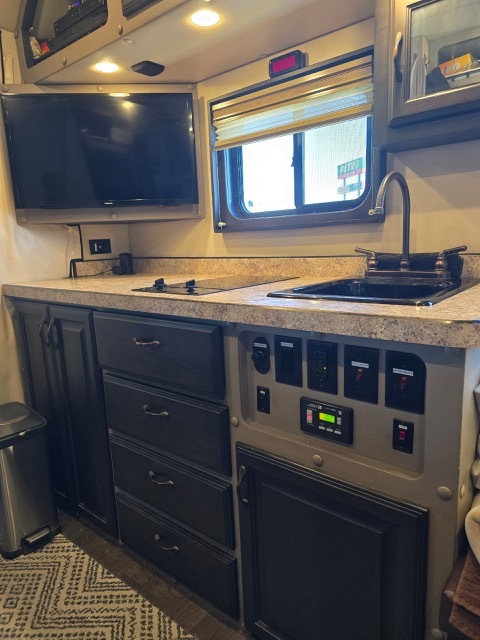 Standard Sleeper Features Include: Paint, Stainless Steel Skirt, Light Weight Aluminum Structure, Raised Panel Door Fronts, 1 Wardrobe Cabinet, Under Sink Storage Cabinet with Shelf, Door Struts In Overhead Cabinets, Cabinets Lined with Cargo Liner For Noise Reduction, U Shaped Overhead Cabinets, One Piece Seamless Shower with Cassette Porti Potti, Premium Grade Residential Style Linoleum, LED Light Fixtures, Hardwood Shower Door, Large White Bar Sink with High Profile Faucet, Egress Window with Hardwood Trim & Shade, Heater/Air Conditioner with Wall Thermostat (Tied To Tractor), Fantastic Fan w/ Smoked Cover, Surround Sound System, TV Antenna with Booster, Norcold 0061 Refrigerator/Freezer, 30 Amp Marine Grade Stainless Steel Shoreline Plug w/ 60 Amp Charger, Automatic Transfer Switch, 1200Watt Inverter for TV & 1 Outlet.