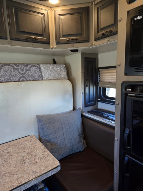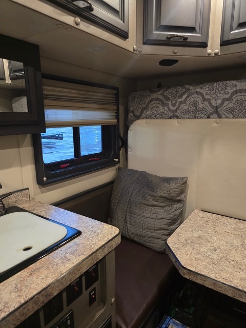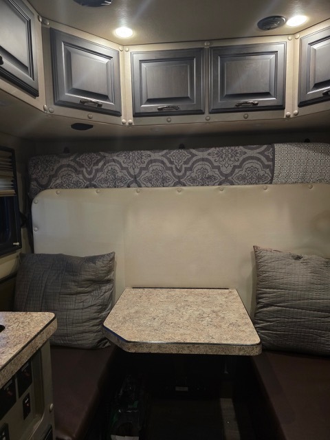 Upgraded Sleeper Options Include: Bed Dinette with Self-Storing Table, Self-Storing Cushions & Bed Struts, All Inclusive Upgrade Interior Décor Package – Dark Knight, Hardwood Dinette Bases, Microwave Convection Oven, Tank Monitor – Fresh Water Tank, Medicine Cabinet with Mirror & Adjustable Shelf, Two Burner Cooktop, Roof Vent with Wireless Remote, Hardwood Trim to Roof Vent, 6-1/2” Stereo Speakers, 32” Wide Screen LED HD TV, LED Auto Lights in all Overhead Cabinets, Décor Light Mounted on Ceiling, Décor Reading Light in Main Bed Area, Dimmer Switch for Ceiling Lights, Blue LED Strip Light below Countertop Lip, 3-Way Switch in Cab Tied to Countertop Lights, Onan 7500 Watt Quite Diesel Generator in 40” Stainless Steel Box, Onan Auto Generator Start with HVAC, 15k BTU Coleman Roof Air Conditioner with Ducted Air & Heat Strip, Wind Deflector, Side Fairings 14” Overall, Stainless Steel Fairing Enclosures, 3 Bag Air Ride System, 44” Stainless Steel DEF Cover, Stainless Steel Below Cab Doors, Deckplate, 12 Amber LED Clearance Lights Top of Sleeper, 6 Amber LED Clearance Lights Below Cab Doors, 2 Pairs Red LED Load Lights, 1 Pair Clear/White LED Load Lights, 14” x 14” Window In Shower, 24” x 16” Window DS, and Much More!