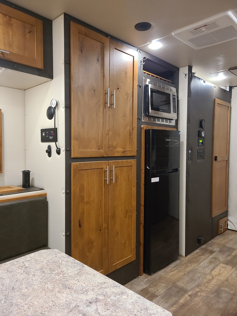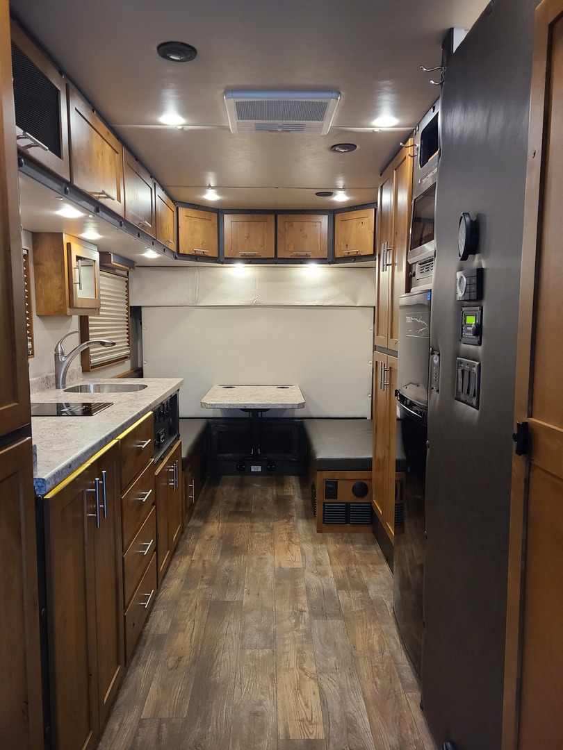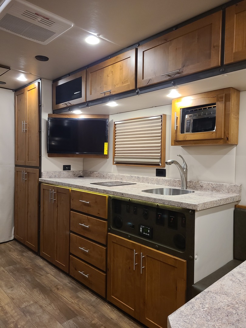 Upgraded Sleeper Options Include: Havana Rum Décor Package; Bed/Dinette with Self-Storing Table, Self-Storing Cushions & Bed Struts; Microwave/Convection Oven; Fresh Water Tank Monitor; Medicine Cabinet with Mirror & Adjustable Shelf; Single Burner Induction Cooktop; Roof Vent with Wireless Remote; Hardwood Trim to Roof Vent and to Refrigerator Opening; 32” TV with In-Motion Satellite; Vinyl Mattress Curtain; Hardwood Dinette Bases; LED Soft White Strip Lighting to All Overhead Cabinets on 1 Switch; Décor Reading Light; Dimmer Switches to Ceiling and Bed/Dinette Area Lights; LED Strip Light Below Countertop Lip; 3-Way Switch in Cab to Counter Lights; Onan Quiet Diesel 7500 watts 3 cyl. with 11,720 hours on gen; Roof A/C 13.5 BTU with Ducted Air and Heat Strip; Fiberglass Wind Deflector, U-Shaped Side Fairings with Stainless Steel Enclosures; 5-Bag Air Ride System; Stainless Behind Top Clearance Lights; Deckplate with Super Step and Grab Handle, Truck Exhaust Extended to Rear of Sleeper; LED Clearance Lights Top of Sleeper; LED Clearance Lights Below Cab Doors; 2 Pairs of Red Load Lights; 1 Pair of Clear/White Load Lights; 1 Pair of Docking Lights; Tool Compartment Door on DS Rear; 14X x 14” Window in Shower; 24” x 16” Window DS with Wood Trim & Shade, Spray Foam Insulation in the Sleeper and in the High Cab; Slide out shelves in sleeper; extra drawers; custom coffee or printer cabinet; and so much more!