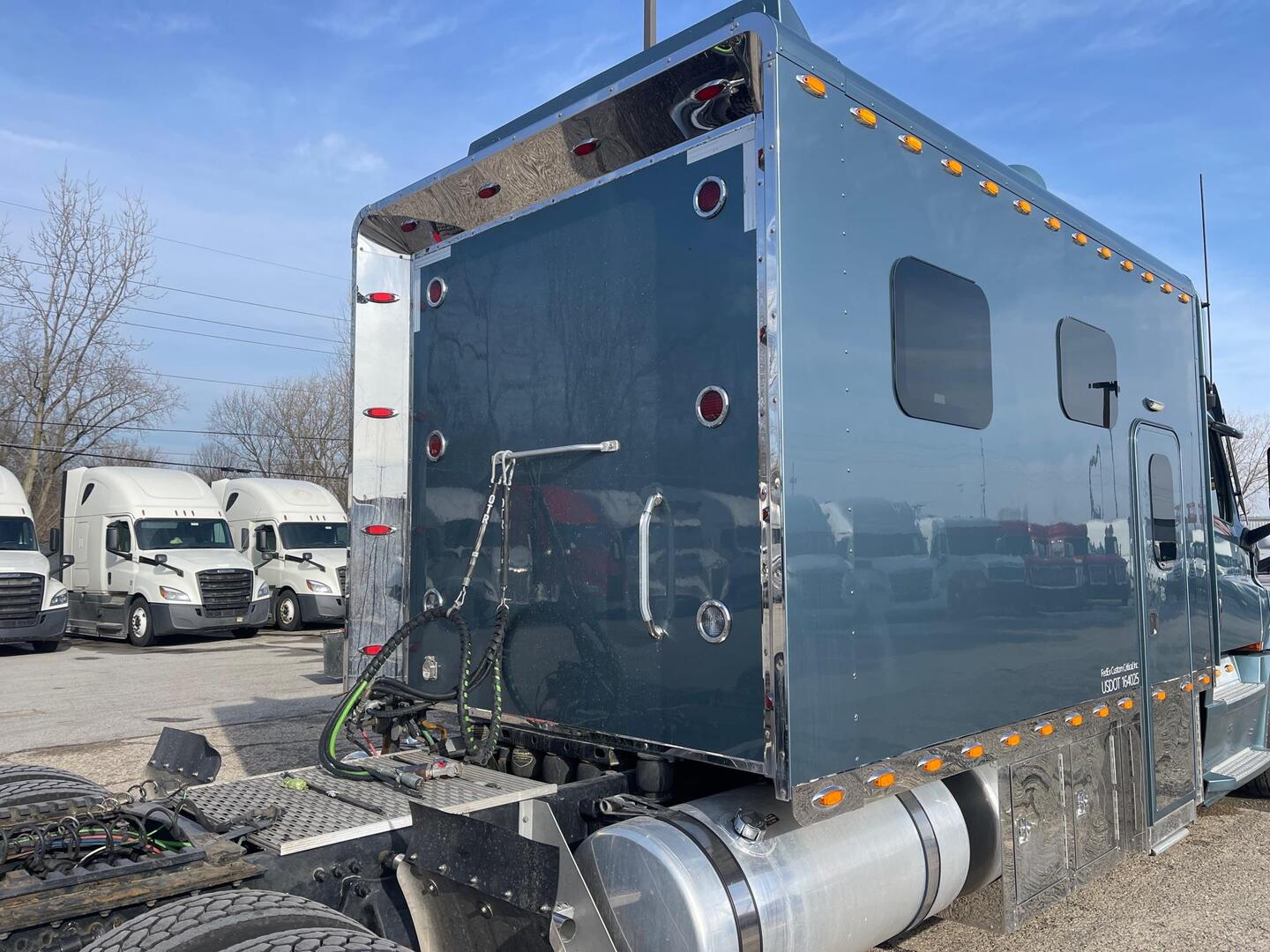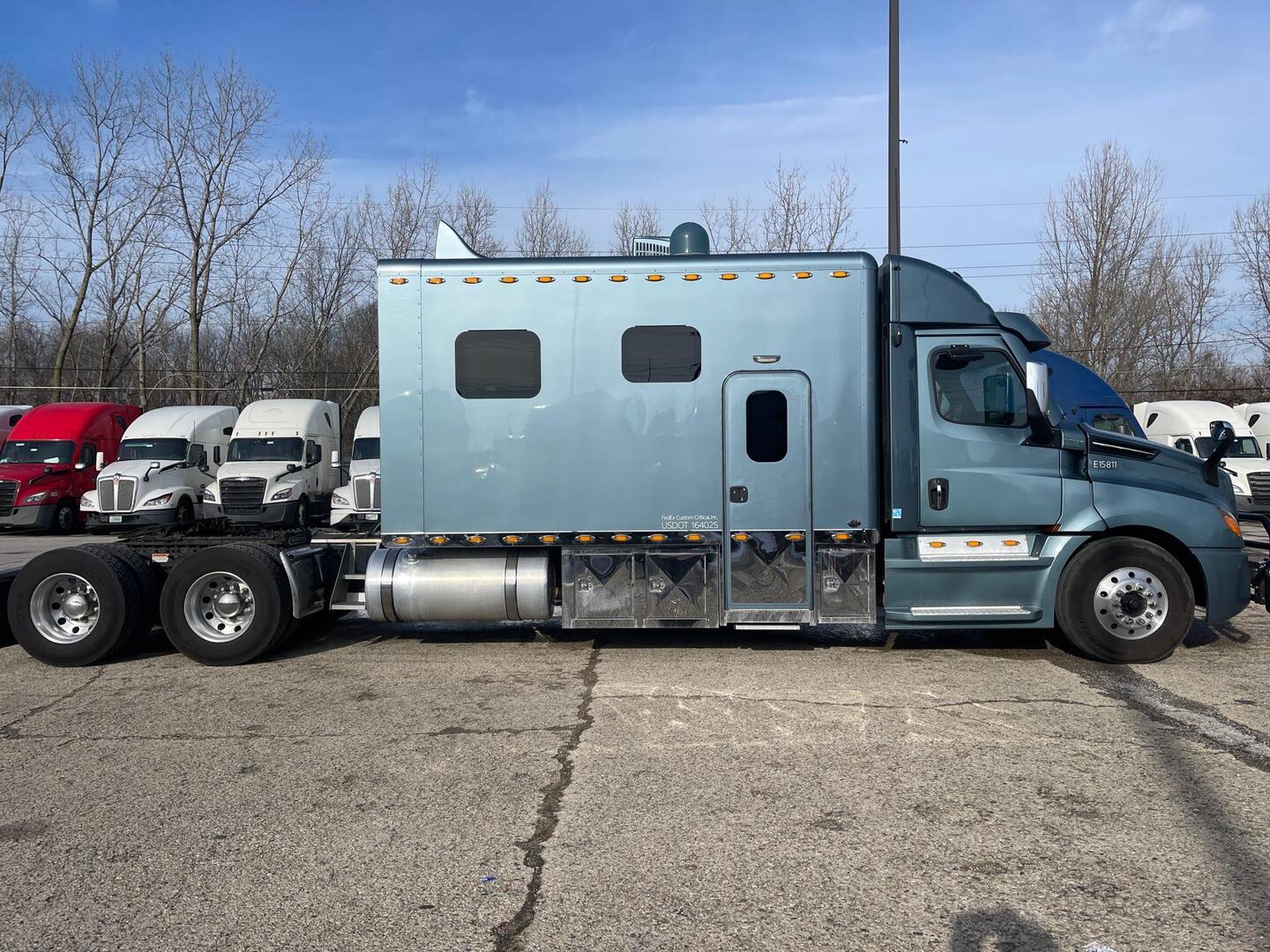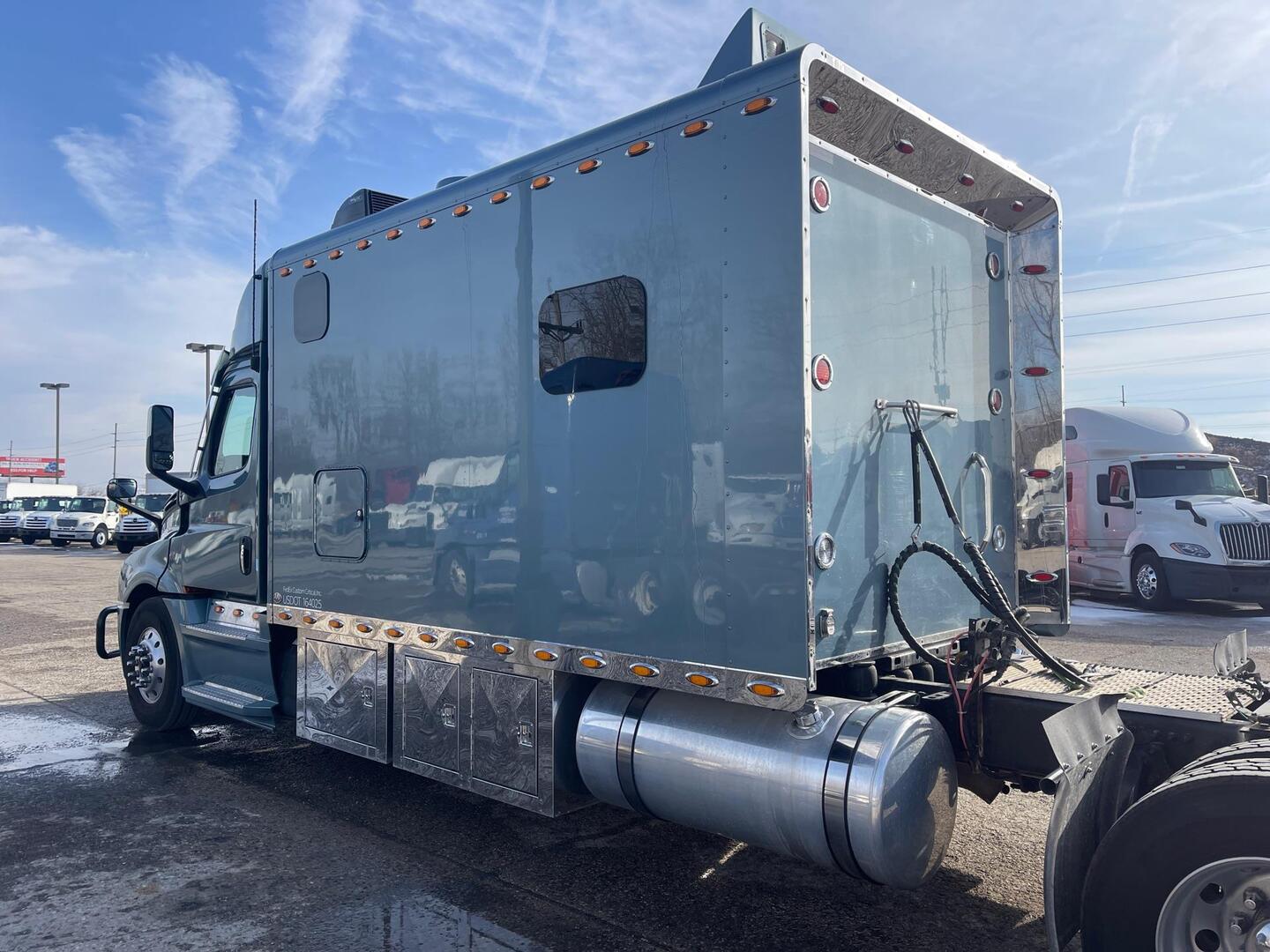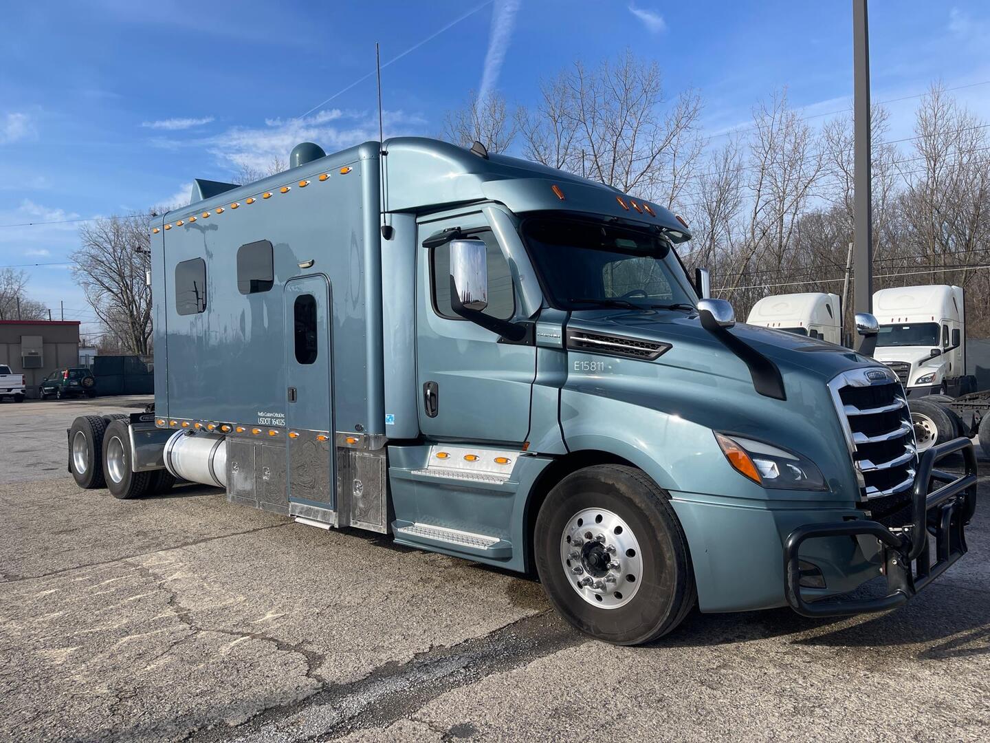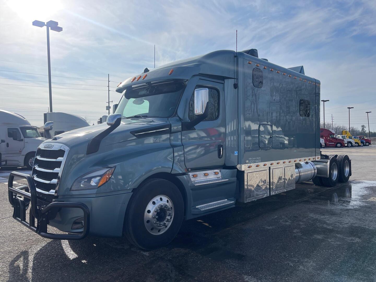 2023 Freightliner Cascadia 126 with 156 Inch ARI Legacy II RBSD Sleeper; Detroit DD15, 505 HP Engine, DT12 12-Speed Overdrive Automated Manual Transmission; 324 Inch Wheelbase.